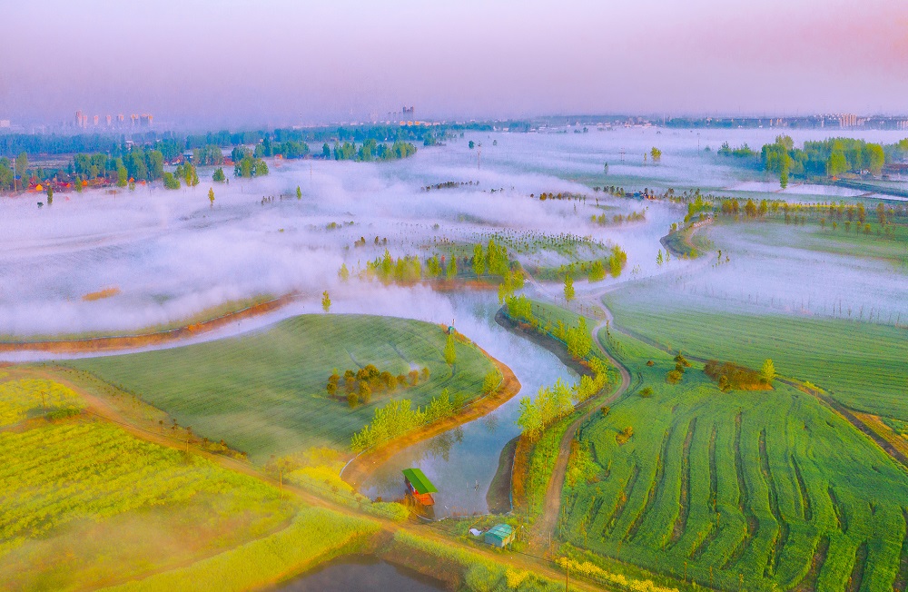 Shrouded in morning mist, the idyllic waterscapes of Sihong county, Suqian of Jiangsu province, roll out an intriguing painted scroll of rural life. Green fields, clear water, charming clouds, fresh air…don’t you want to take a hiking trip there?