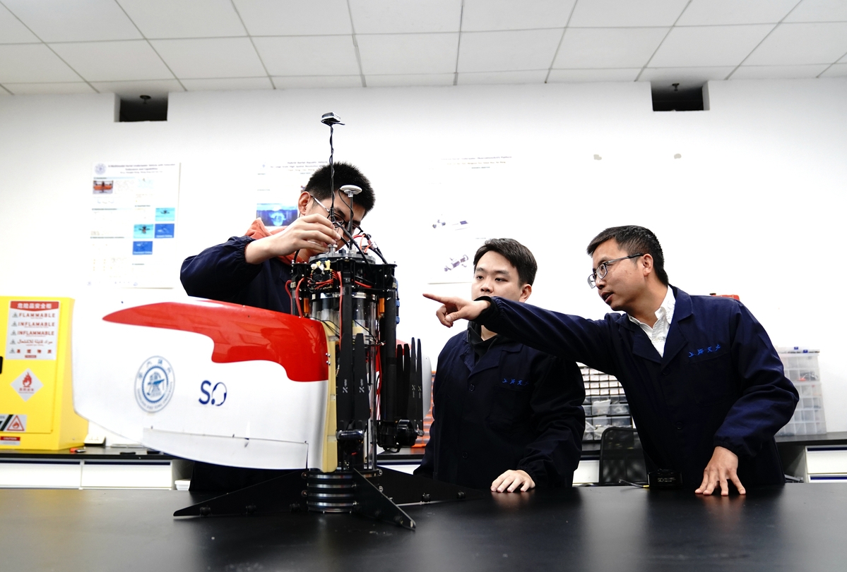 According to the researchers, the patented aircraft can work at a depth of 50 meters underwater, and it has a max load capacity of 5 kg. It was tested last year in Qiandao Lake, in East China's Zhejiang province, and it will undergo sea trials this year in the South China Sea.