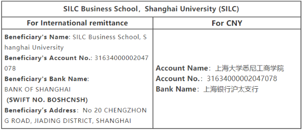 Applicants for the degree programs of SILC business school should transfer the deposit to SILC’s separate account.