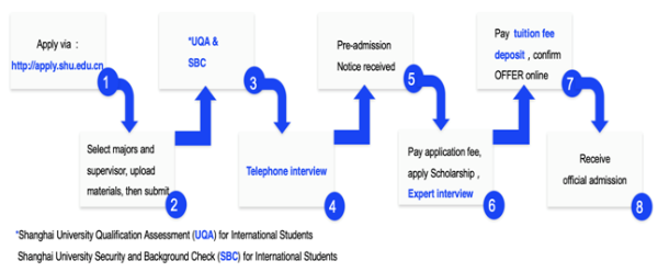 Note: any applicant who cannot get a Certificate of No Criminal Record in their home country should sign the No criminal record Commitment with Shanghai University (You can download it at https://apply.shu.edu.cn).