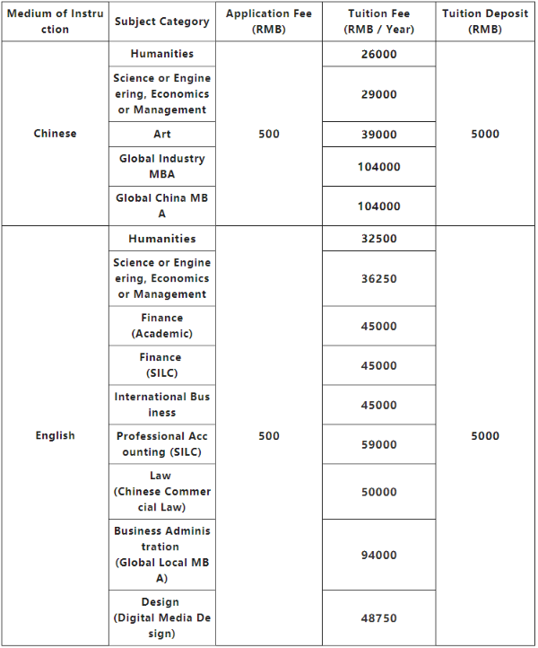 All applicants for degree programs must pay the tuition deposit RMB 5000 after receiving the E-admission notice within 20 working days. If the payment is not made within 20 days, the application will be regarded as abandoned. Those who obtain a scholarship after deposit payment can have the payment refunded after registration. For detailed deposit policies, please refer to the attached Policies on Tuition Deposit Payment for Shanghai University International Students.