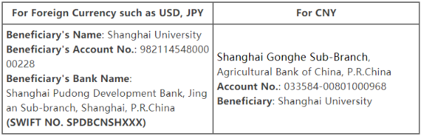 2. The application fees are not refundable whether admitted or not. For information about the tuition deposit payment please refer to the attached Policies on Tuition Deposit Payment for Shanghai University International Students.