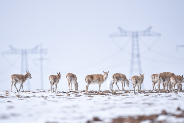 A flock of Tibetan antelopes graze in Hoh Xil, Qinghai province, on Tuesday. Every year, tens of thousands of pregnant Tibetan antelopes migrate to Hoh Xil in spring to give birth, after mating in November or December, and leave with their offspring around August. WU GANG/XINHUA