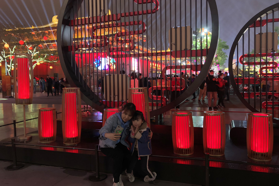 Tourists take pictures at the Great Tang All Day Mall in Xi'an, Shaanxi province on April 21, 2021. [Photo by Liu Xiaozhuo/chinadaily.com.cn]