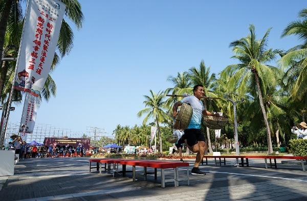 Locals take part in a variety of celebration activities during the 2021 Hainan Li and Miao Traditional Sanyuesan Festival in Sanya, South China's Hainan province on April 13. [Photo/VCG]