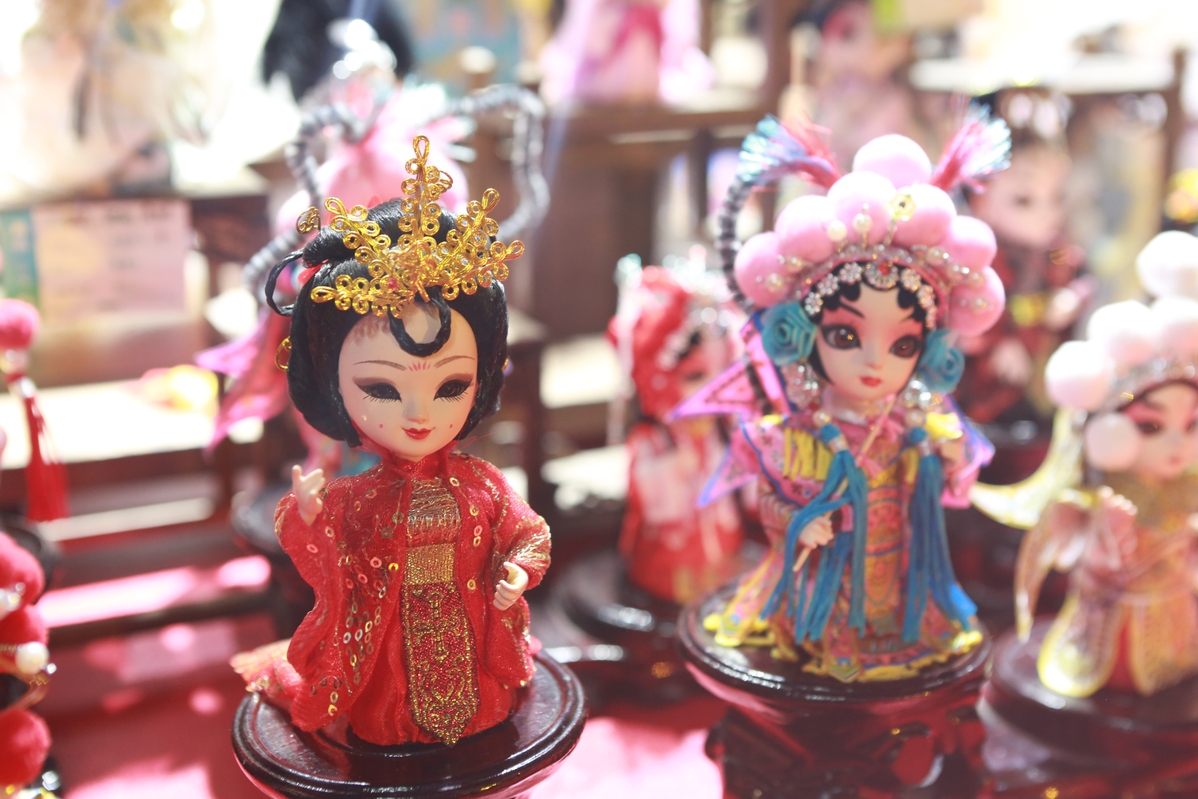 Dolls in Peking opera costumes are displayed at a cultural and creative store at the Great Tang All Day Mall in Xi'an, Shaanxi province, on April 21, 2021. [Photo/chinadaily.com.cn]
