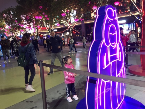 A girl enjoys herself at the Great Tang All Day Mall in Xi'an, Shaanxi province on April 21, 2021. [Photo by Liu Xiaozhuo/chinadaily.com.cn]