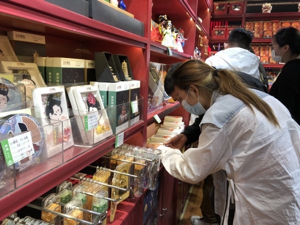 Tourists visit a cultural and creative store at the Great Tang All Day Mall in Xi'an, Shaanxi province on April 21, 2021. [Photo by Liu Xiaozhuo/chinadaily.com.cn]