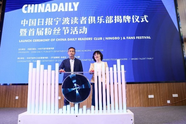 Li Guijun (left), deputy director of the publicity department of the Ningbo Municipal Committee of the Communist Party of China, and Liu Weiling, deputy editor-in-chief of China Daily, announce the launch of the China Daily Readers' Club (Ningbo) on Thursday. [Photo provided to chinadaily.com.cn]