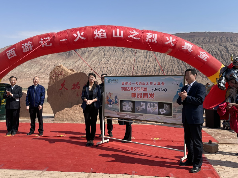 The stamps' launching ceremony was held near the Flaming Mountains, a tourist attraction in Turpan, Xinjiang Uygur autonomous region. [Photo provided to China Daily]