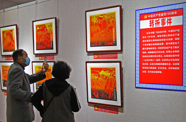 The exhibition displays 100 paper-cutting artworks that depict the history of Party's development over the past 100 years. It will last to May 5.