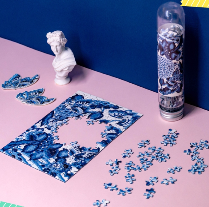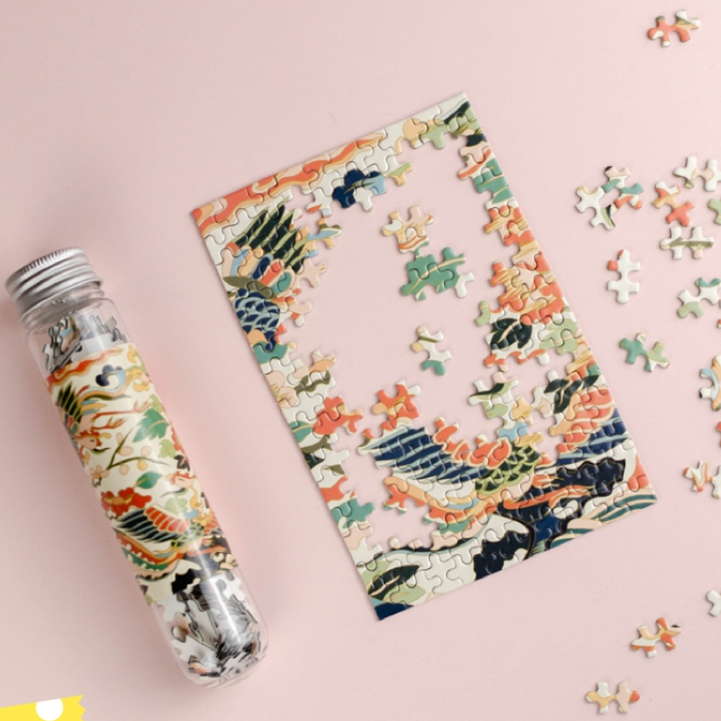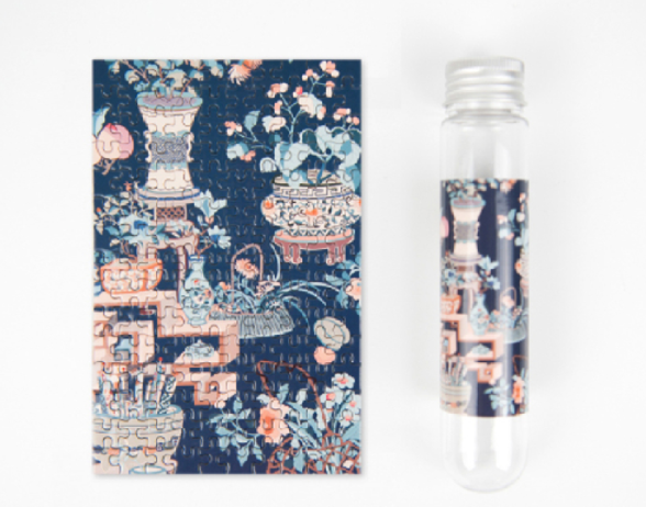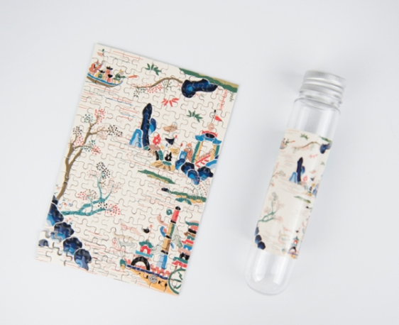 As solving jigsaw puzzles can help children develop intelligence, the Tsinghua University Art Museum has launched four puzzles with beautiful and auspicious traditional patterns. By the way, the puzzles can be stored in a tube, making it less likely the kids will lose some pieces.