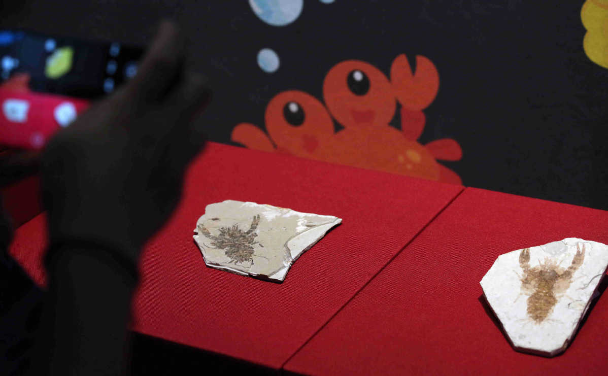 Shrimp fossils are seen in the exhibition in South China's Guangdong. [Photo by Zheng Erqi/chinadaily.com.cn]