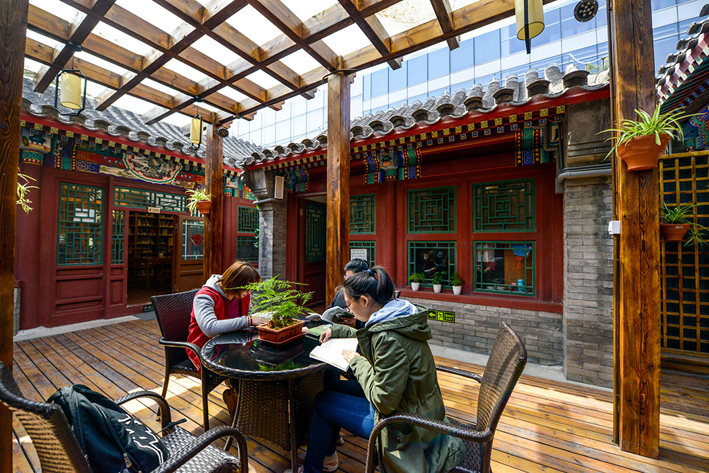 Opened to the public in 2018, the Chunshu Library is a medium-sized library tucked away in a hutong ally in downtown Beijing. The building, a quadrangle dwelling, is the former residence of famous Chinese journalist Lin Baishui (1874-1926). The residence was rated as a foremost protected cultural heritage site in Xicheng district in 1990.