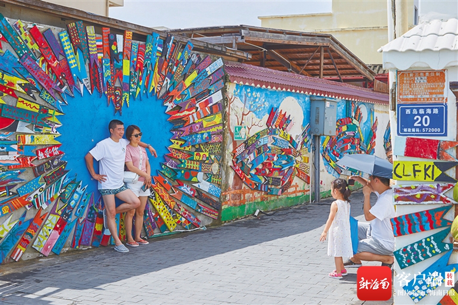 Visitors pose for a photo at a village on West Island, Sanya. [Photo/Hainan Daily]