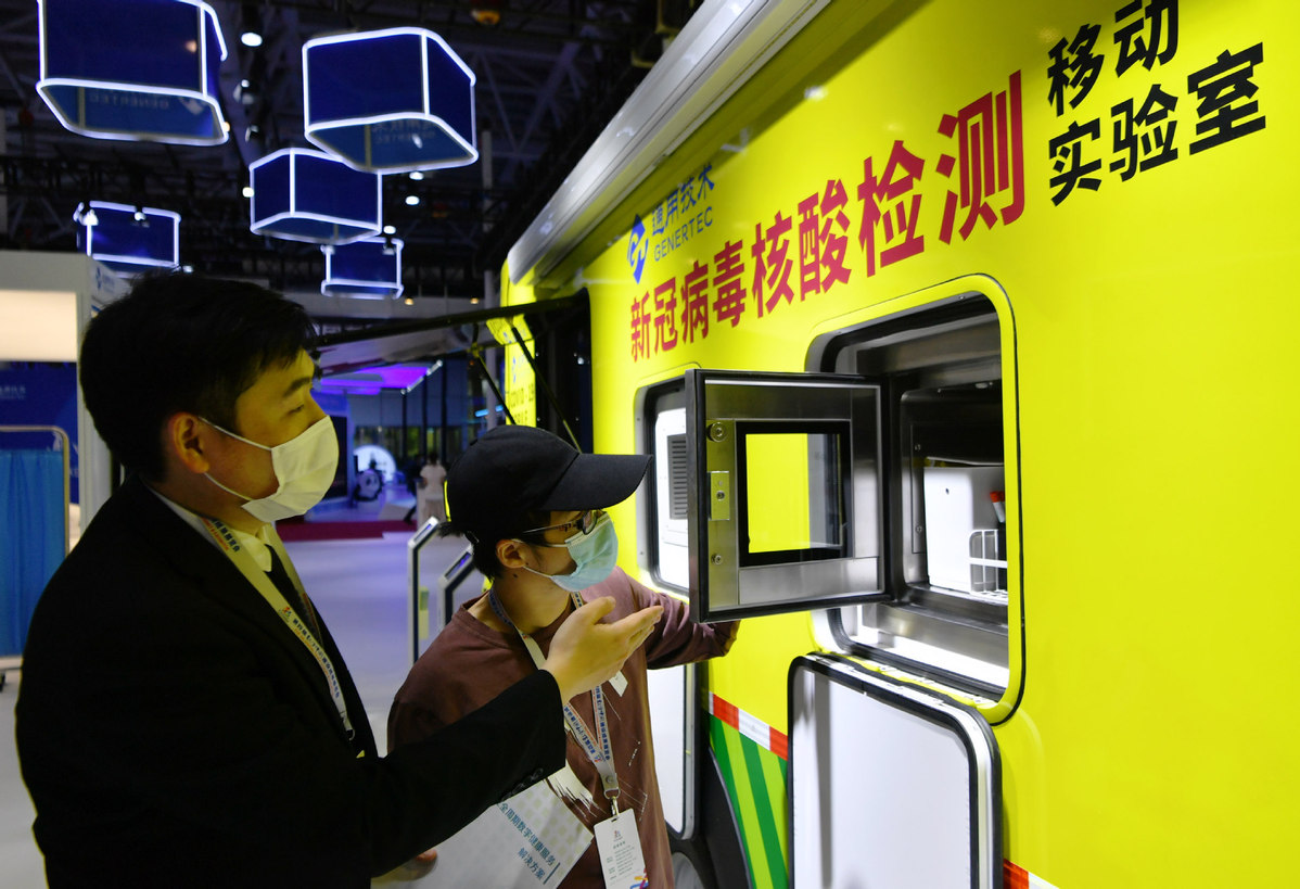 A high-tech company displays a mobile lab for COVID-19 nucleic acid testing at the digital achievement exhibition during the 4th Digital China Summit in Fuzhou, Fujian province, on April 25, 2021. [Photo/Xinhua]