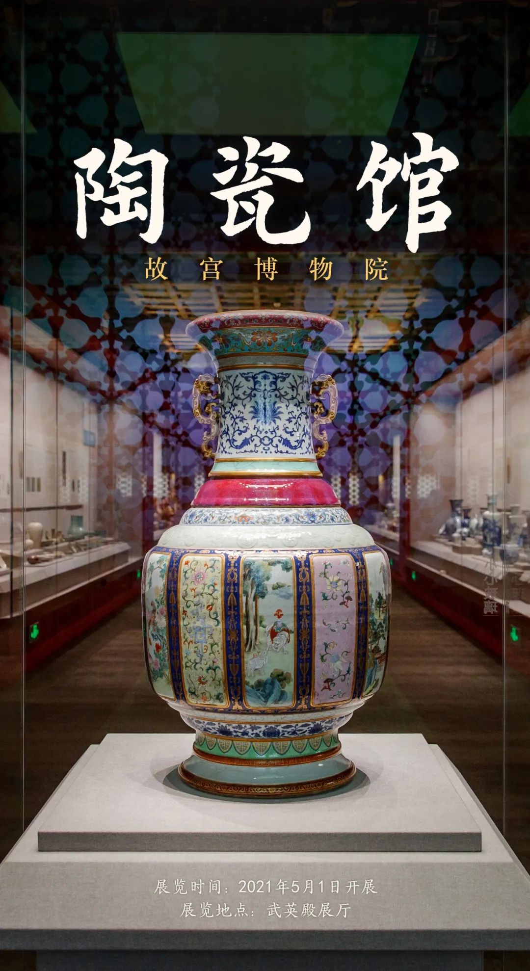 The gallery has been relocated from the Hall of Literary Glory to the Hall of Martial Valor (Wuying Dian), with new design and enriched exhibits. Over 1,000 masterpieces are presented to show the long history and profound culture of Chinese ceramics.