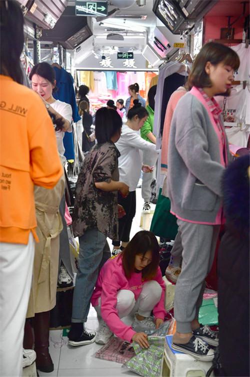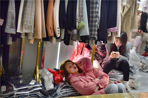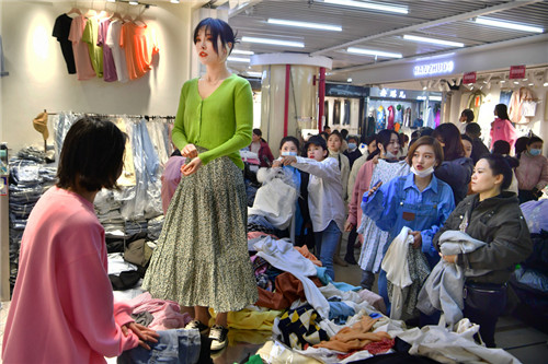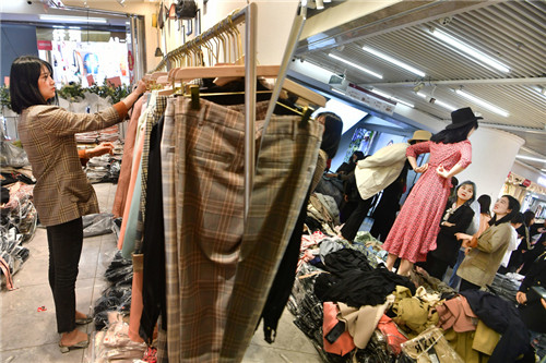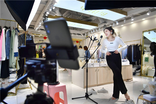 A livingstreaming sale is taking place at a garment market's store. GUO LILIANG/FOR CHINA DAILY