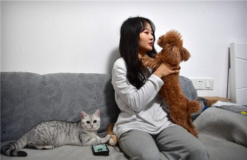 After work, Shasha relaxes by playing with her dog. GUO LILIANG/FOR CHINA DAILY