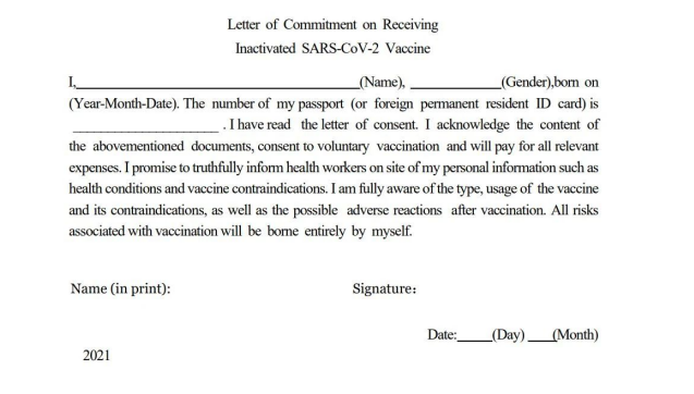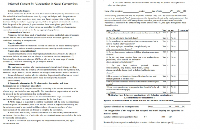 Before the vaccination, an informed consent and a letter of commitment need to be signed at the same time. You should also take personal protection measures and inform medical staff on site of your health condition so that they can decide if you are suitable for inoculation or not.