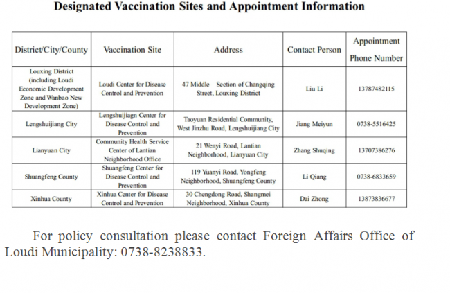 Guidelines on COVID-19 vaccination for foreign nationals in Hunan