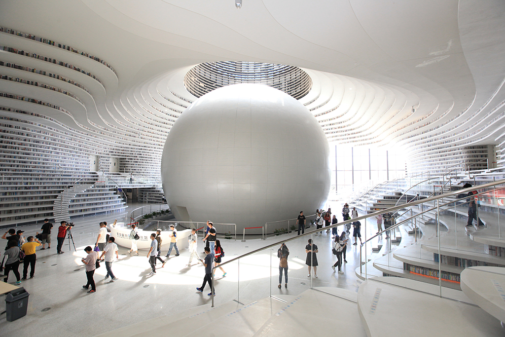 Boasting a collection of about 1.2 million books, the Binhai Library in North China’s Tianjin was co-designed by the Netherlands-based architecture and urban design company MVRDV and the Architectural Branch of the Tianjin Urban Planning and Design Institute.