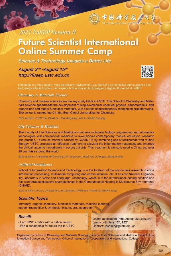 Join us for the 2021 University of Science and Technology of China (USTC) Future Scientist Exchange Program (FuSEP) International Online Summer Camp. Let’s shine a light on the future by having an adventure in innovation.