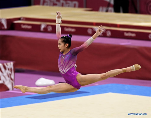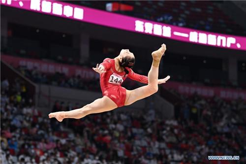Li Shijia of Sichuan competes during the floor exercises event of women's individual all-round final at the 2021 Chinese National Gymnastic Championships in Chengdu, southwest China's Sichuan Province, May 7, 2021. [Xinhua/Wang Xi]
