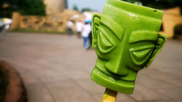 At the Sanxingdui Museum in the southwestern province of Sichuan, where an ongoing archeological dig has unveiled a trove of ancient treasures, tourists can sink their teeth into lollies that look like the unique-shaped bronze masks retrieved from sacrificial pits at the site.