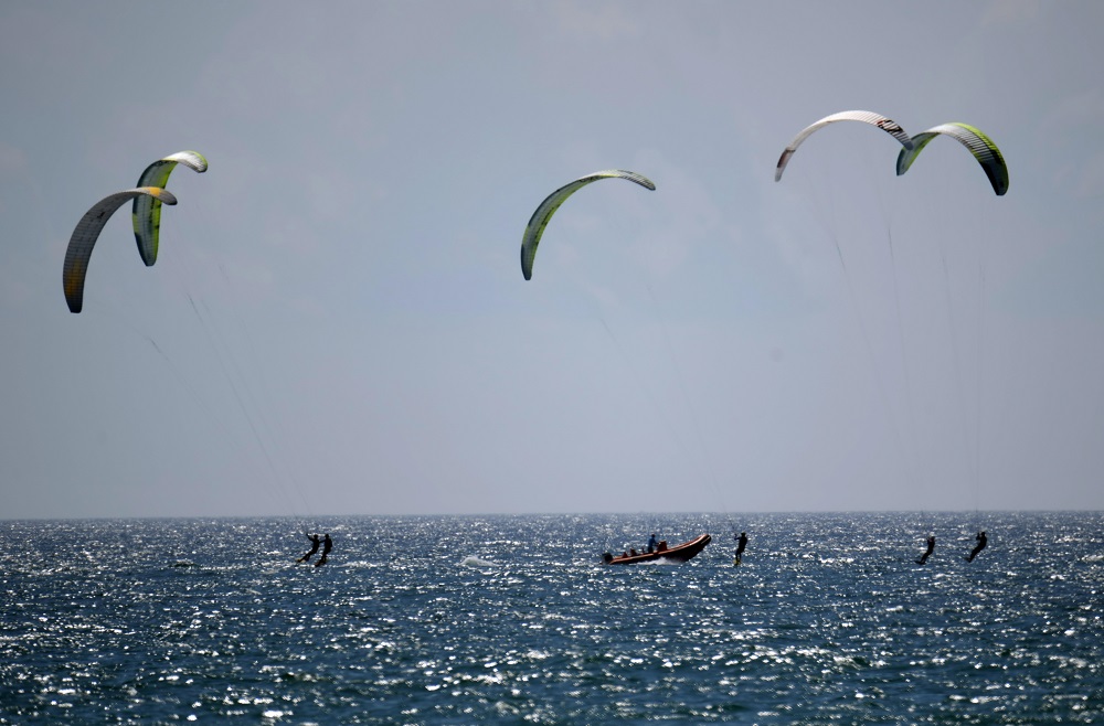 Enjoy the cool air on the waves, but remember to hold the rail tightly! With the approaching summer days, more and more people are heading to Qionghai, Hainan province, to follow their oceanic passion for water sports such as kitesurfing, a new star!