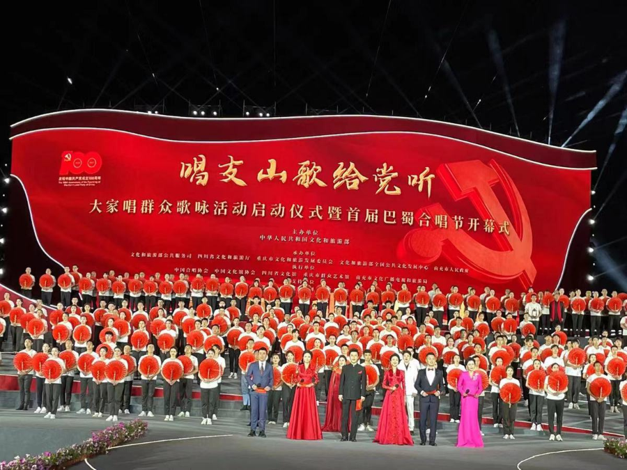 The first Bashu Chorus Festival, or a nationwide singing event "Sing A Folk Song to Our Party", kicked off in a launch ceremony on the evening of May 16 in Nanchong, Southwest China's Sichuan province. [Photo provided to China Daily]