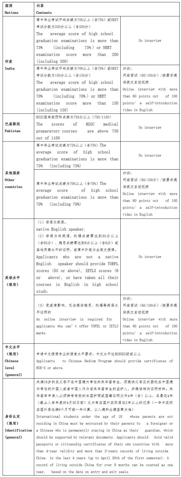 For those who want to apply for the MBBS program: TOEFL or IETLS certificate, or supporting documents of having taken all the courses in English in high school