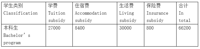 5) Scholarship standards (this scholarship will be granted once at the first semester; unit: yuan)