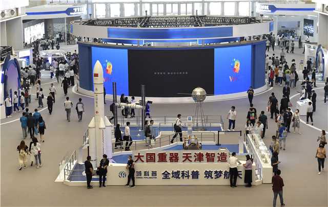 Visitors are seen at the booth of China Aerospace Science and Technology Corporation in Tianjin on May 20, 2021. [Photo by Jia Lei/ chinadaily.com.cn]