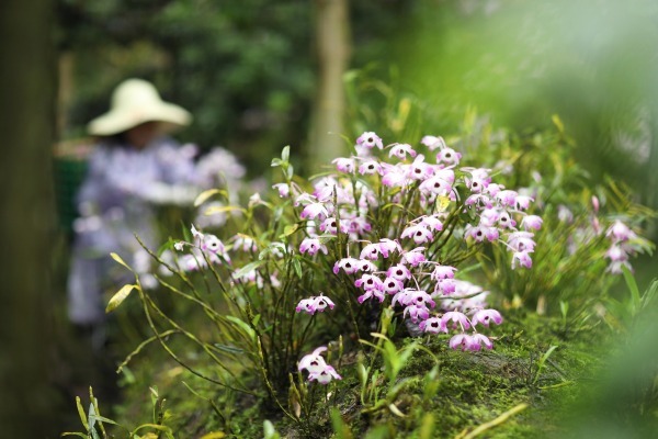Farmers pick dendrobium flowers at Chishui, Southwest China's Guizhou province, on May 5. The local government has encouraged farmers to plant dendrobium flowers, a traditional Chinese medicinal product, to increase incomes in recent years. [Photo/Xinhua]