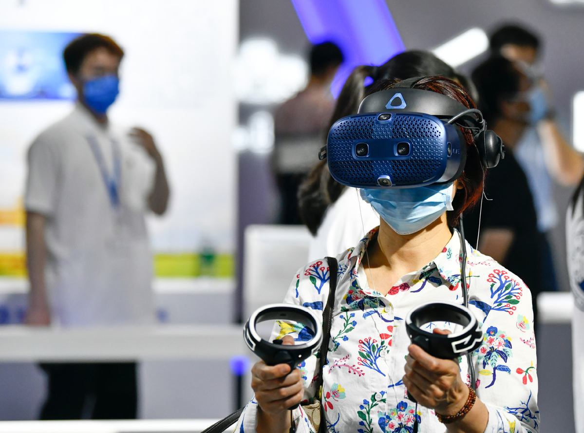 A visitor tries virtual class at the World Intelligence Congress in Tianjin, North China, May 20, 2021. [Photo/Xinhua]