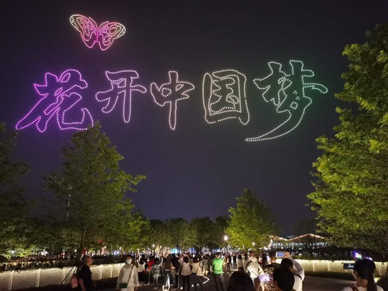 With 1,500 drones lighting up the night sky with designs such as a huge magnolia, narcissus and butterflies for 17 minutes on Friday evening, the 10th China Flower Expo in Chongming in Shanghai concluded its first opening day.