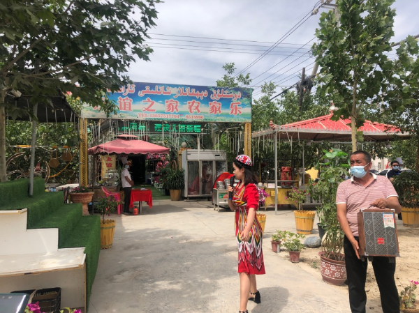 Guests enjoy their afternoon at the Street for Entrepreneurship and Employment in Shache county, Kashgar prefecture, Northwest China's Xinjiang Uygur autonomous region, on May 21, 2021. [Photo by Sun Ru/chinadaily.com.cn]