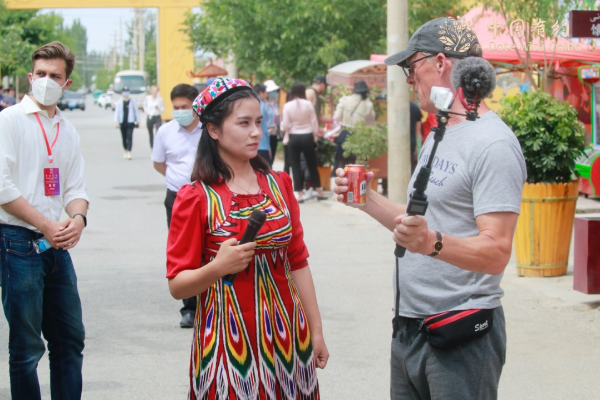 The A Date with China international media tour group visited Shache County in Northwest China's Xinjiang Uyghur autonomous region on Friday, exploring the county's Street for Entrepreneurship and Employment, which has greatly contributed to poverty alleviation.
