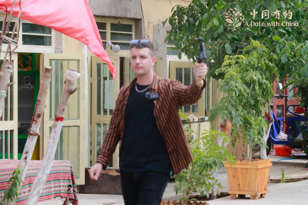 A visitor takes a video of the Street for Entrepreneurship and Employment in Shache county, Kashgar prefecture, Northwest China's Xinjiang Uygur autonomous region, on May 21, 2021. [Photo/chinadaily.com.cn]