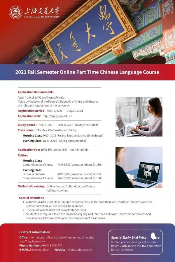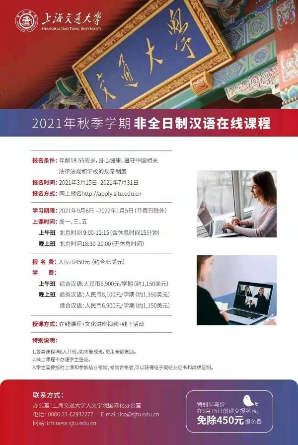 Submit your online application form before June 15 and the 450RMB application fee will be waived.