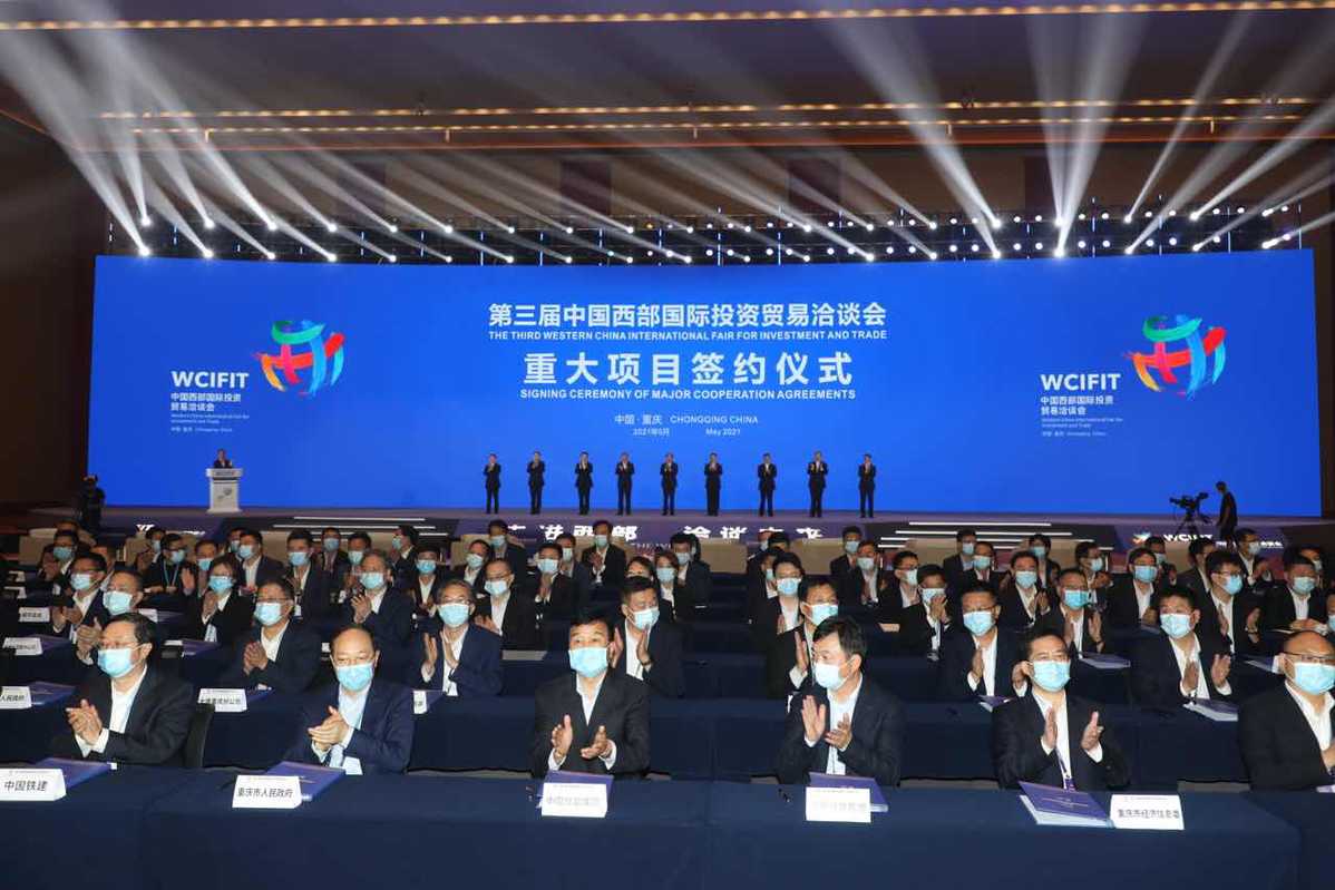 On Friday afternoon, a signing ceremony for major cooperate agreements is held at the Third Western China International Fair for Investment and Trade, with a total of 102 deals worth 228.5 billion yuan signed. [Photo provided to chinadaily.com.cn]
