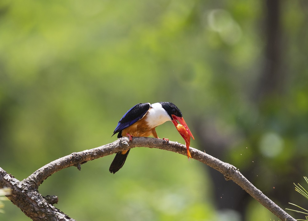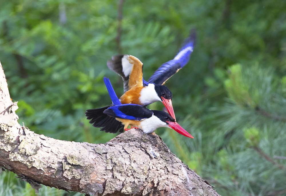 A group of one of the most beautiful and endangered bird species, Black-capped kingfishers (Halcyon pileata), were recently spotted in Rizhao city, Shandong province. Their appearance added vitality to the improved local environment!