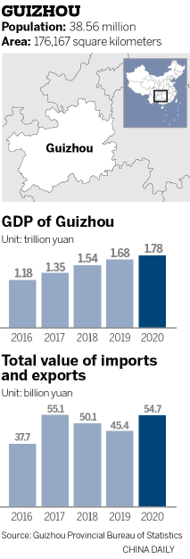 Last year, the total industrial output value in Guizhou hit 1.4 trillion yuan ($217.7 billion), marking an increase of nearly 1 trillion yuan from the data in 2010. Such a stride made the past decade the fastest period of industrialization in the history of the province and could provide a relatively sound foundation for further industrial and green upgrades in the future.