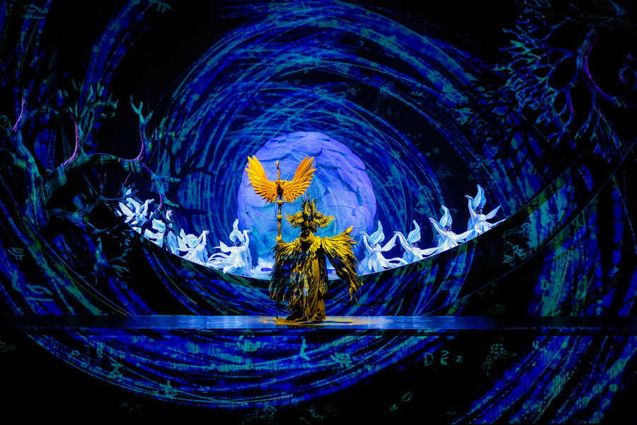 an iconic stage show at the Beijing Happy Valley amusement park, premiered on May 28, using modern technology to tell a mythological story. [Photo provided to China Daily]