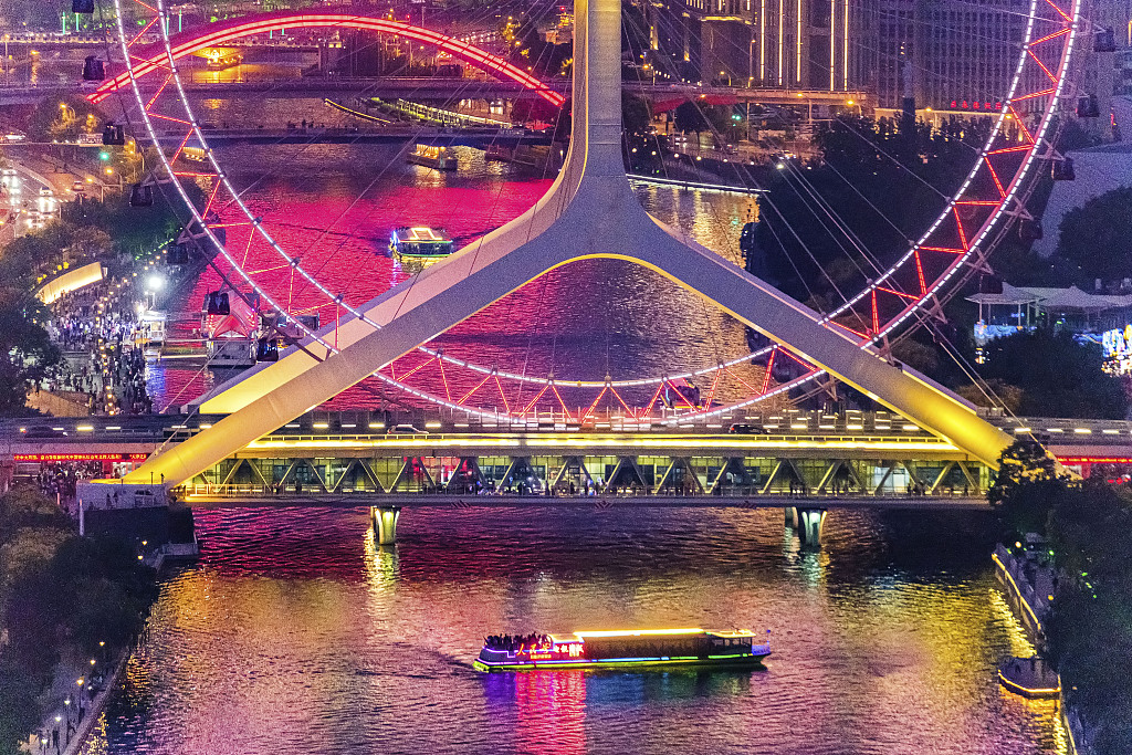 Spanning the Haihe River, one of Tinajin’s landmarks, is another: the Eye of Tianjin sky wheel. It rolls and shines with fascinating charm as a kind of dazzling and moving painted scroll.