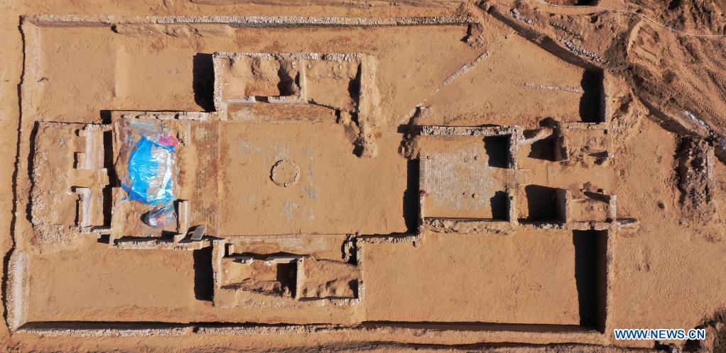 Undated aerial photo shows the site of a temple called Xianying Palace at the remains of the Qingpingbao castle, located in Jingbian county, Yulin city of Northwest China's Shaanxi province. The remains of a Great Wall castle dating back to the Ming Dynasty (1368-1644) were discovered in Northwest China's Shaanxi province, said the Shaanxi Academy of Archaeology Tuesday. Architectural relics, including two courtyards, were found at the remains of the Qingpingbao castle.[Photo/Xinhua]