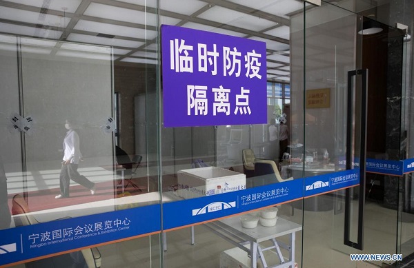Photo taken on June 9, 2021 shows a temporary quarantine site at the entrance of the second China-Central and Eastern European Countries (CEEC) Expo in Ningbo, east China's Zhejiang Province. The expo opened to public visitors on Wednesday. Themed "Fostering a New Development Paradigm, Sharing a Win-Win Opportunity," the expo aims to boost trade between China and Central and Eastern European Countries (CEECs). [Xinhua/Jin Liwang]