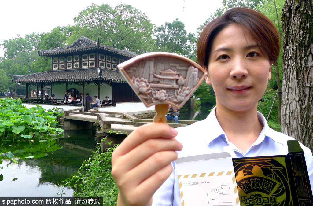 A worker shows the ice pop shaped like ancient buildings in Zhuozhengyuan Garden in Suzhou, Jiangsu province, on July 18, 2020. [Photo/Sipa]