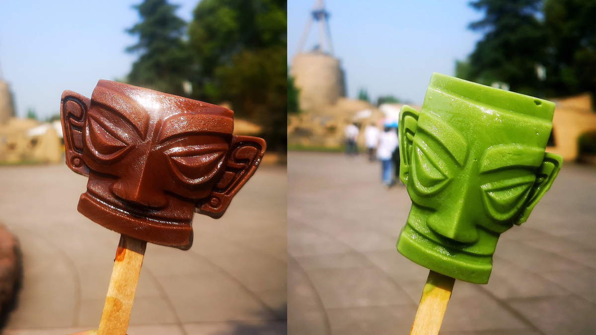 The ice cream pops rolled out by the Sanxingdui Museum in Sichuan province come in two flavors -- "bronze" matcha and "excavation" chocolate. [Photo/Sina Weibo account of Sanxingdui Museum]